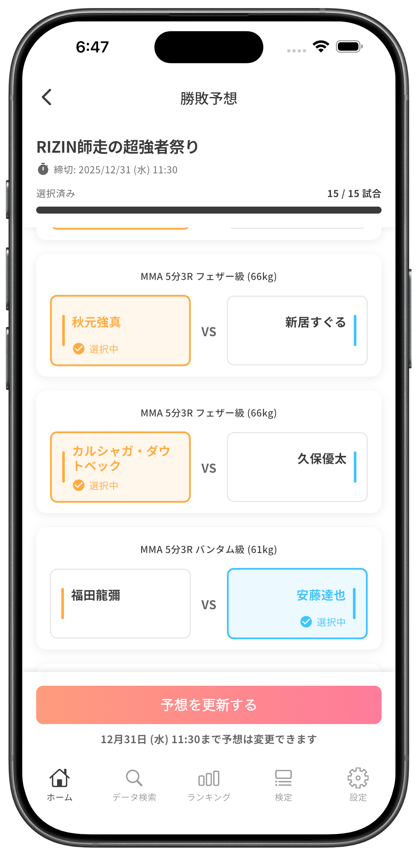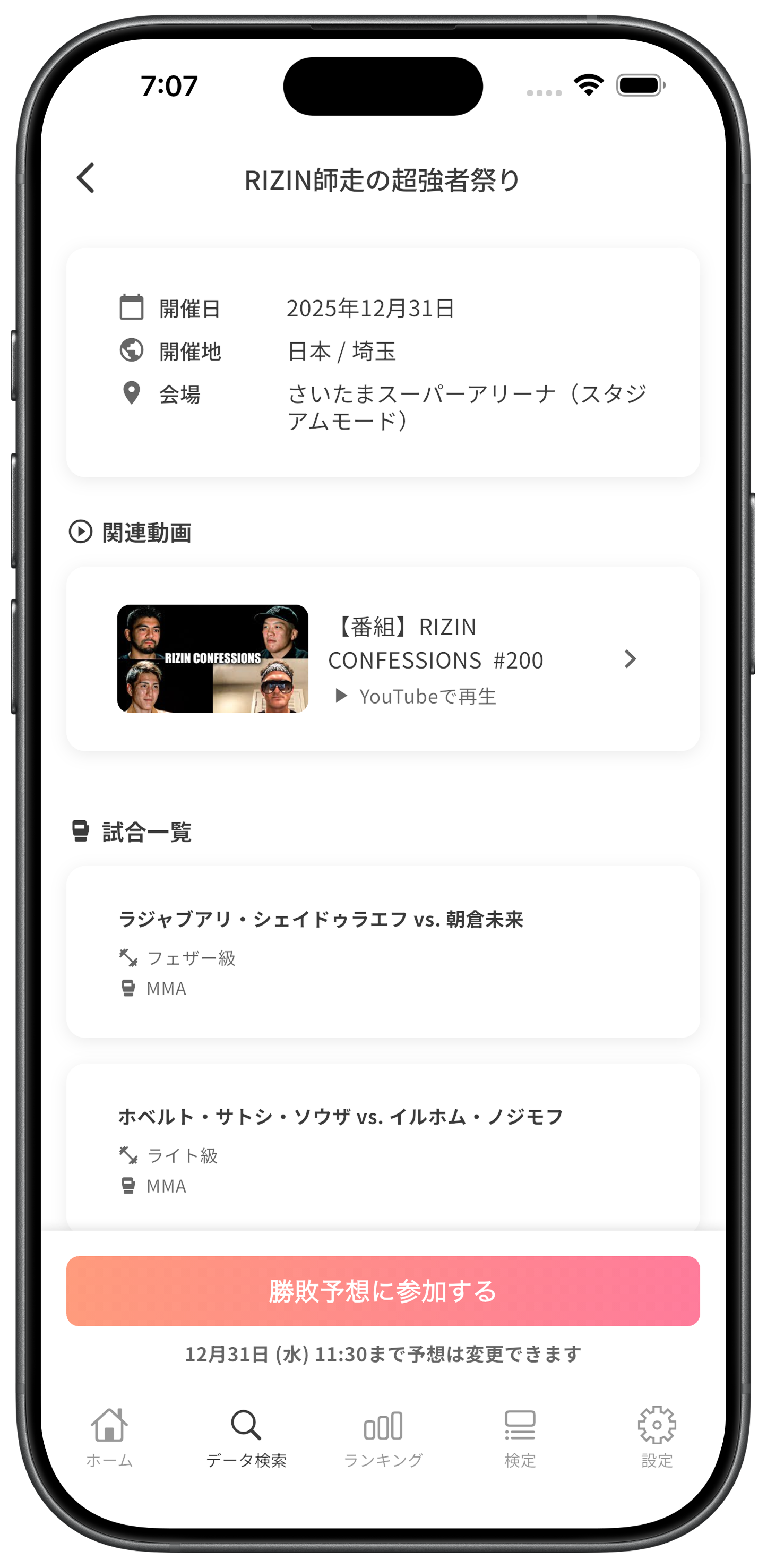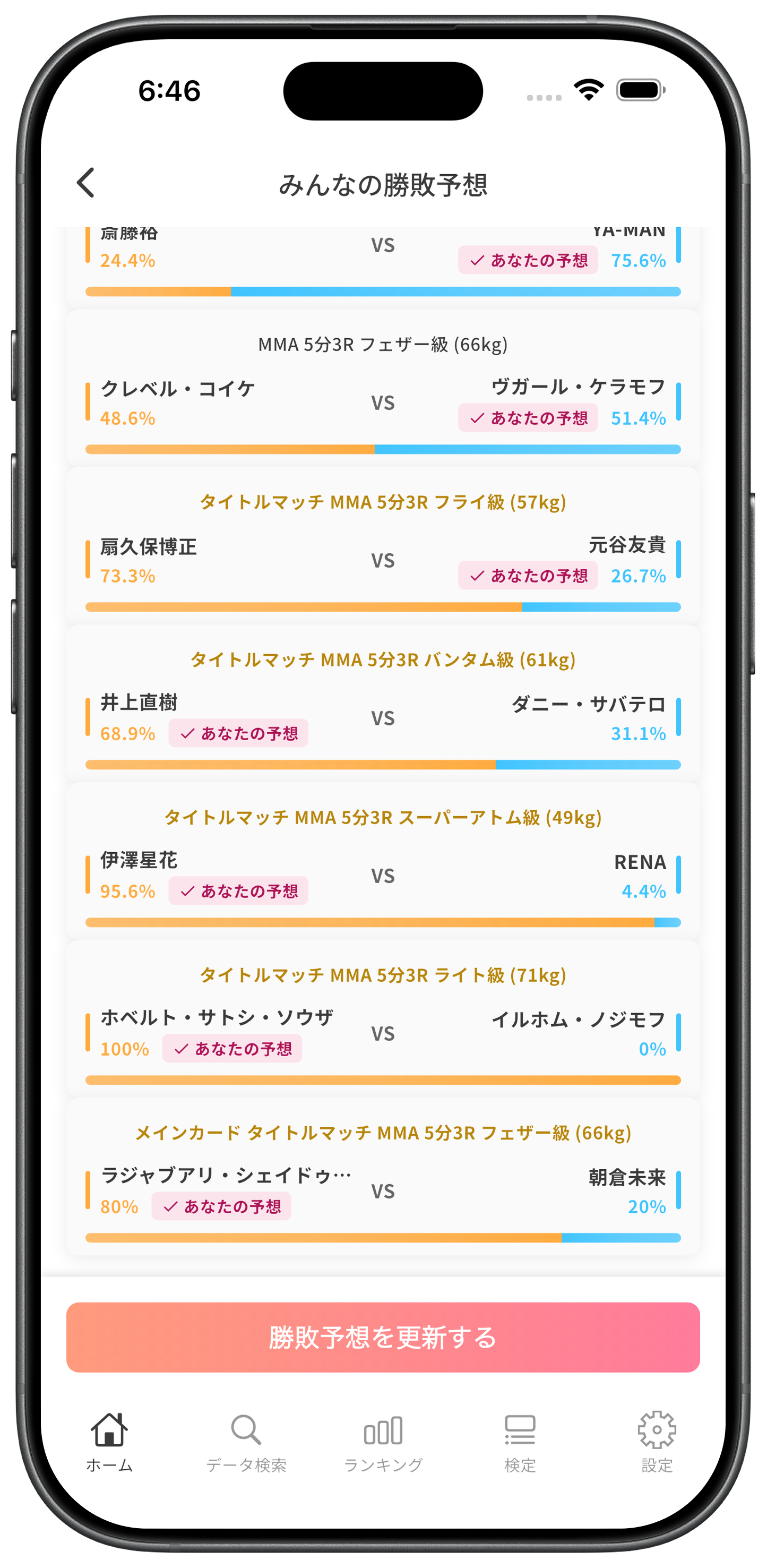 RIZINやUFCなどの勝敗予想や検定、自分の思うランキングを作成して楽しみましょう!